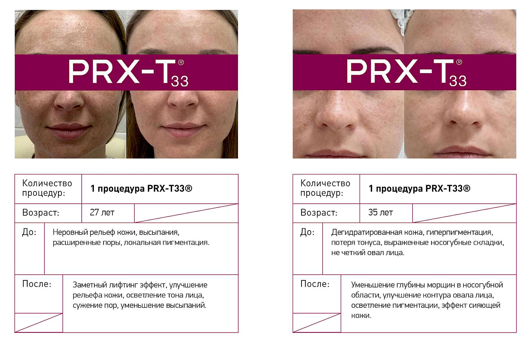 PRX-T33® - это новое качество кожи и безграничные возможности применения: от процедуры для лица «на выход» до мощнейшей стимуляции дермы в сочетании с аппаратными и инъекционным методиками.